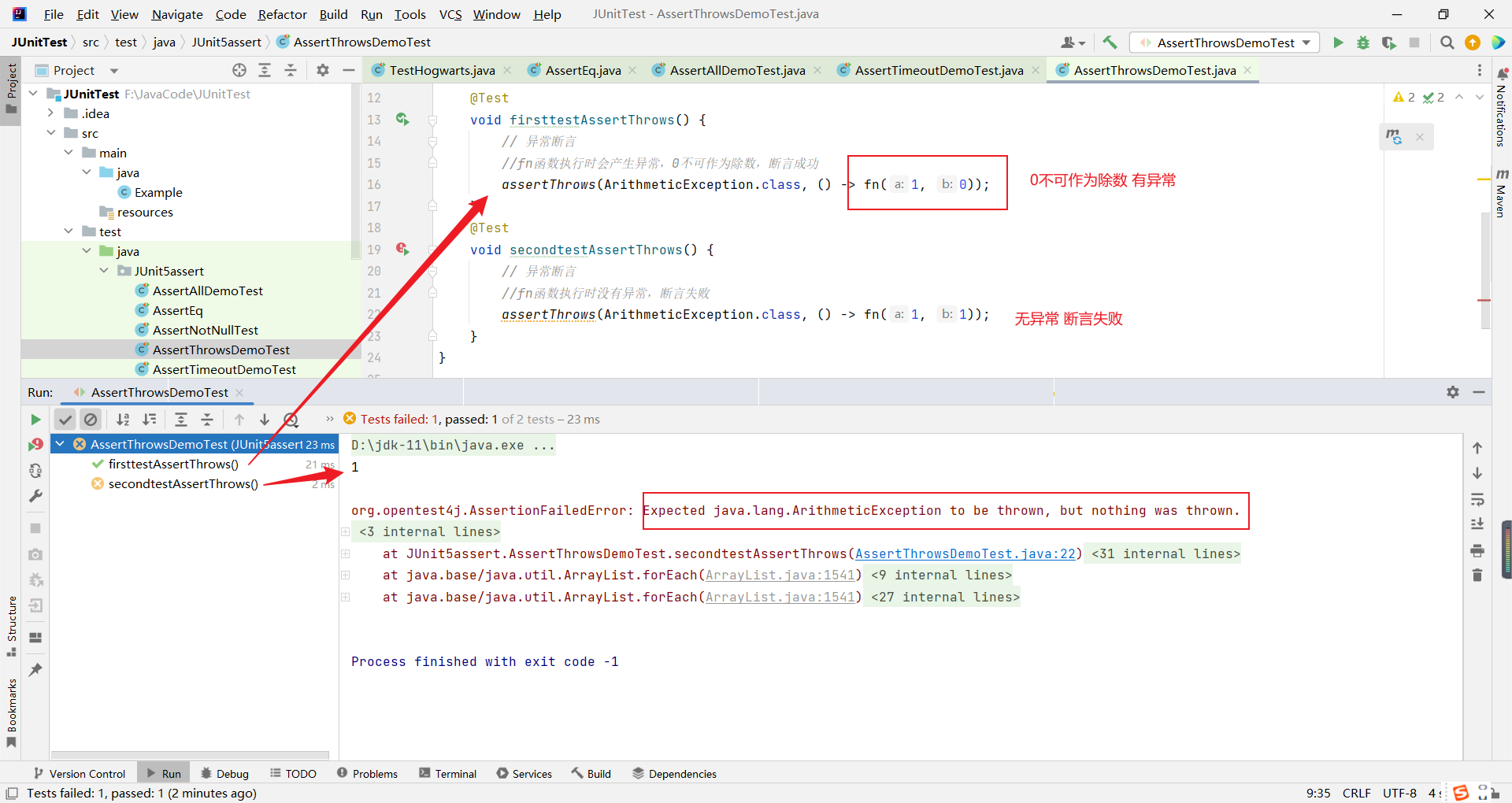firsttestAssertThrows中断言成功 -secondtestAssertThrows中断言失败