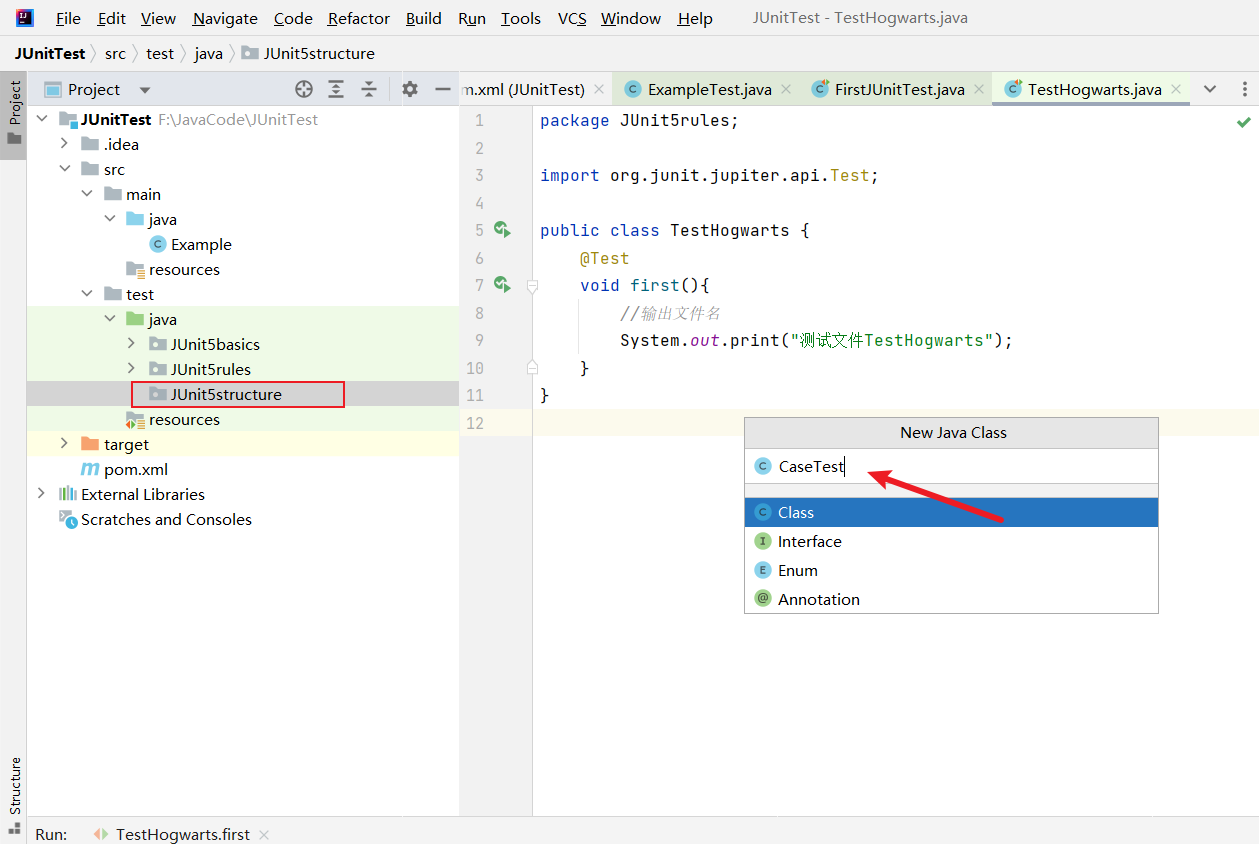 - 实例:新建一个文件夹 在文件夹中 新建一个测试类