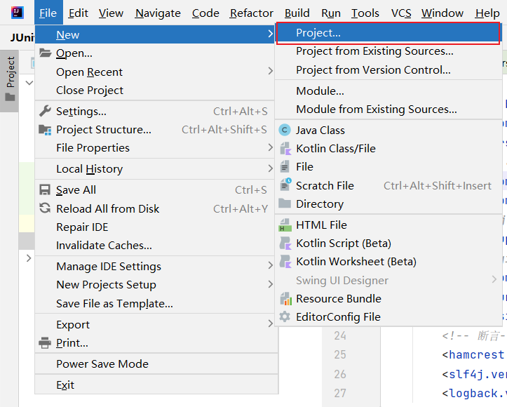 - File->New->Project