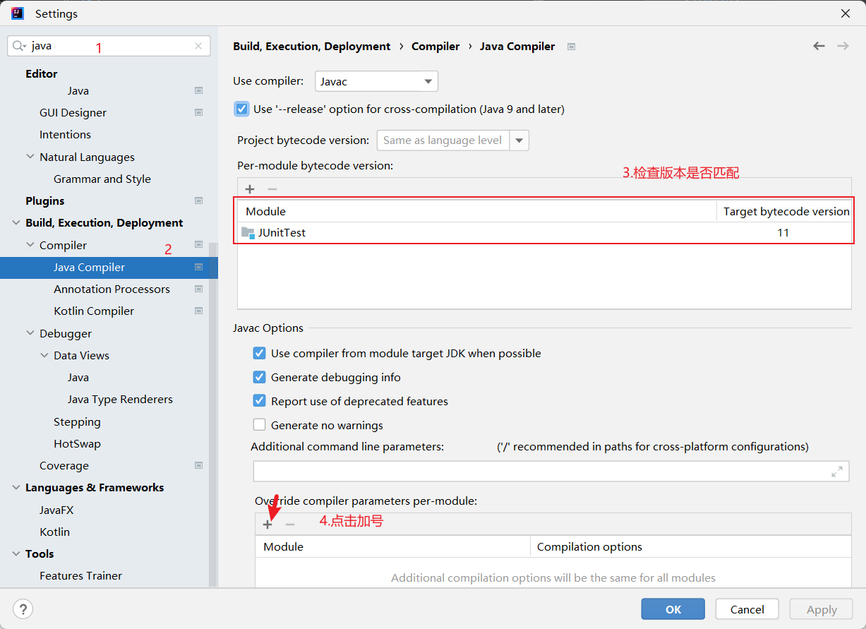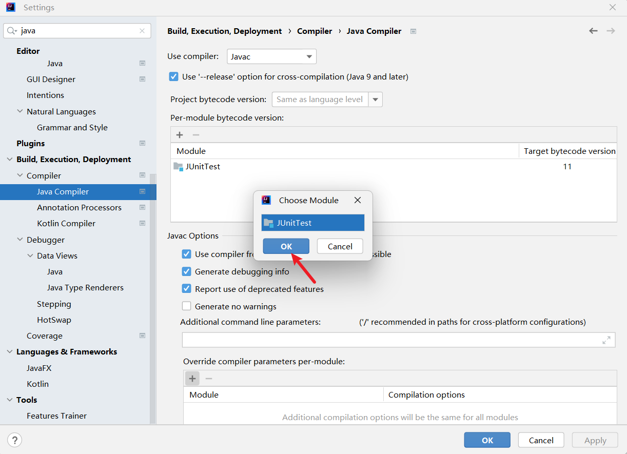 - 4.点击 Javac Options 下方的 model 的加号添加 Model