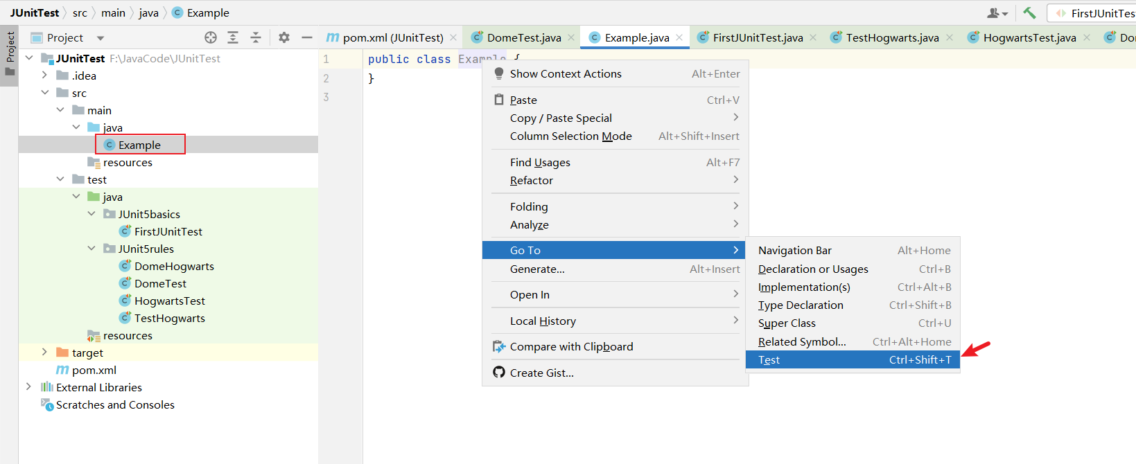Go To->Test