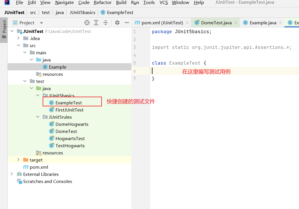 - 在文件目录中可以看到已经成功创建测试文件,在文件中编写测试用例。