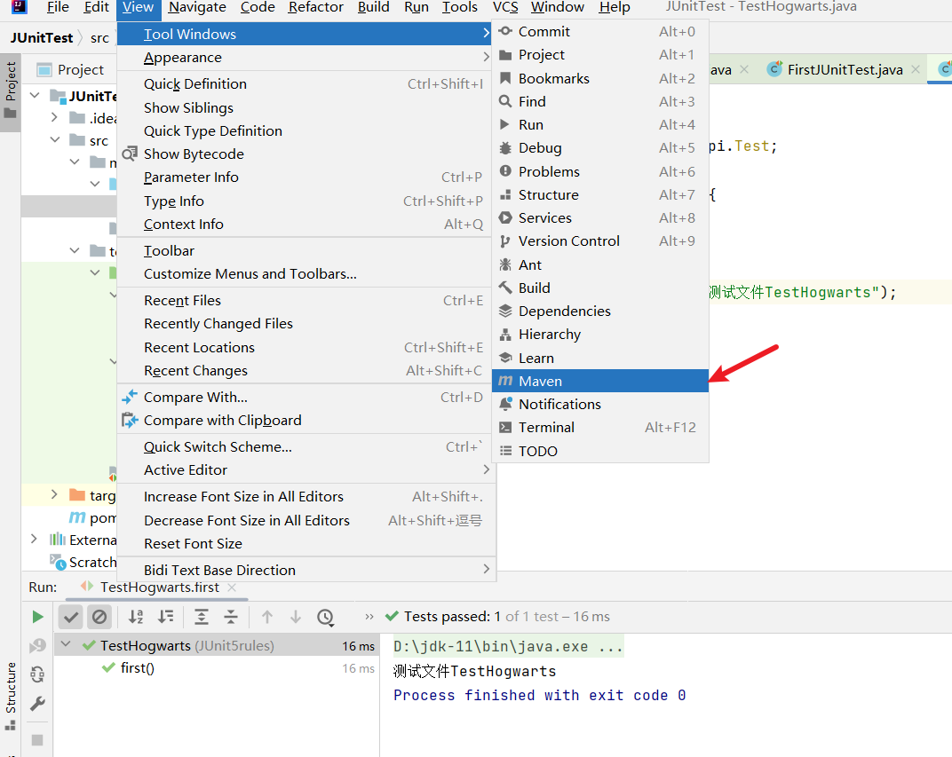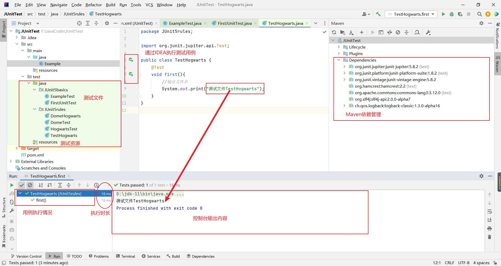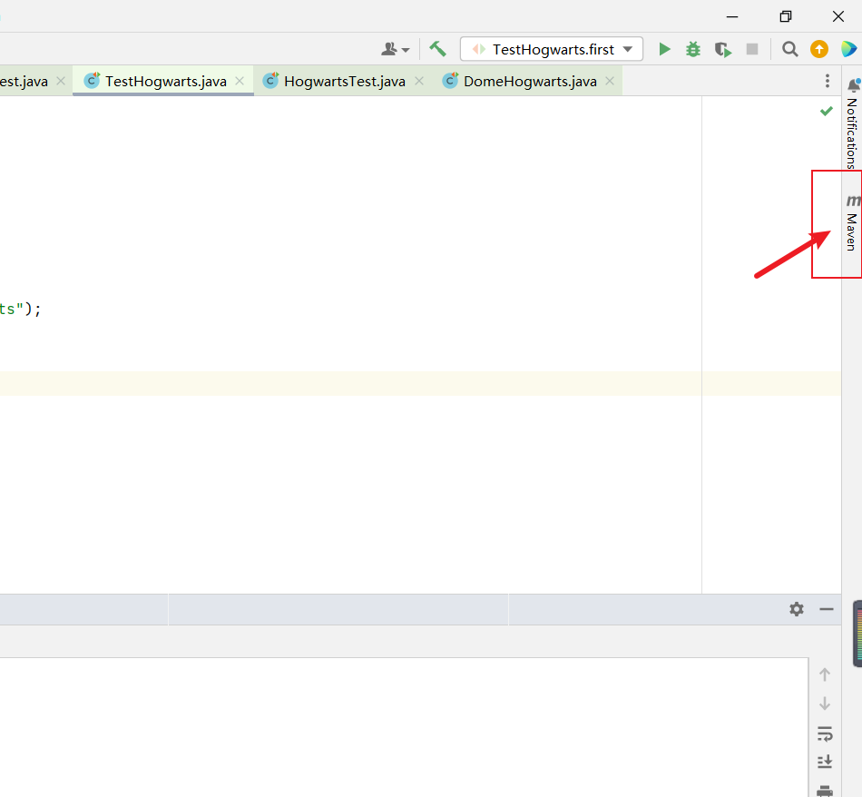 - 资源目录 test 文件夹中对测试文件编辑、管理;软件下方 Run 中可以查看测试用例的执行情况、查看控制台的输出;在测试文件左侧可以对单一测试用例进行执行,也可以执行测试类;软件右侧点击 Maven 对依赖进行管理。
