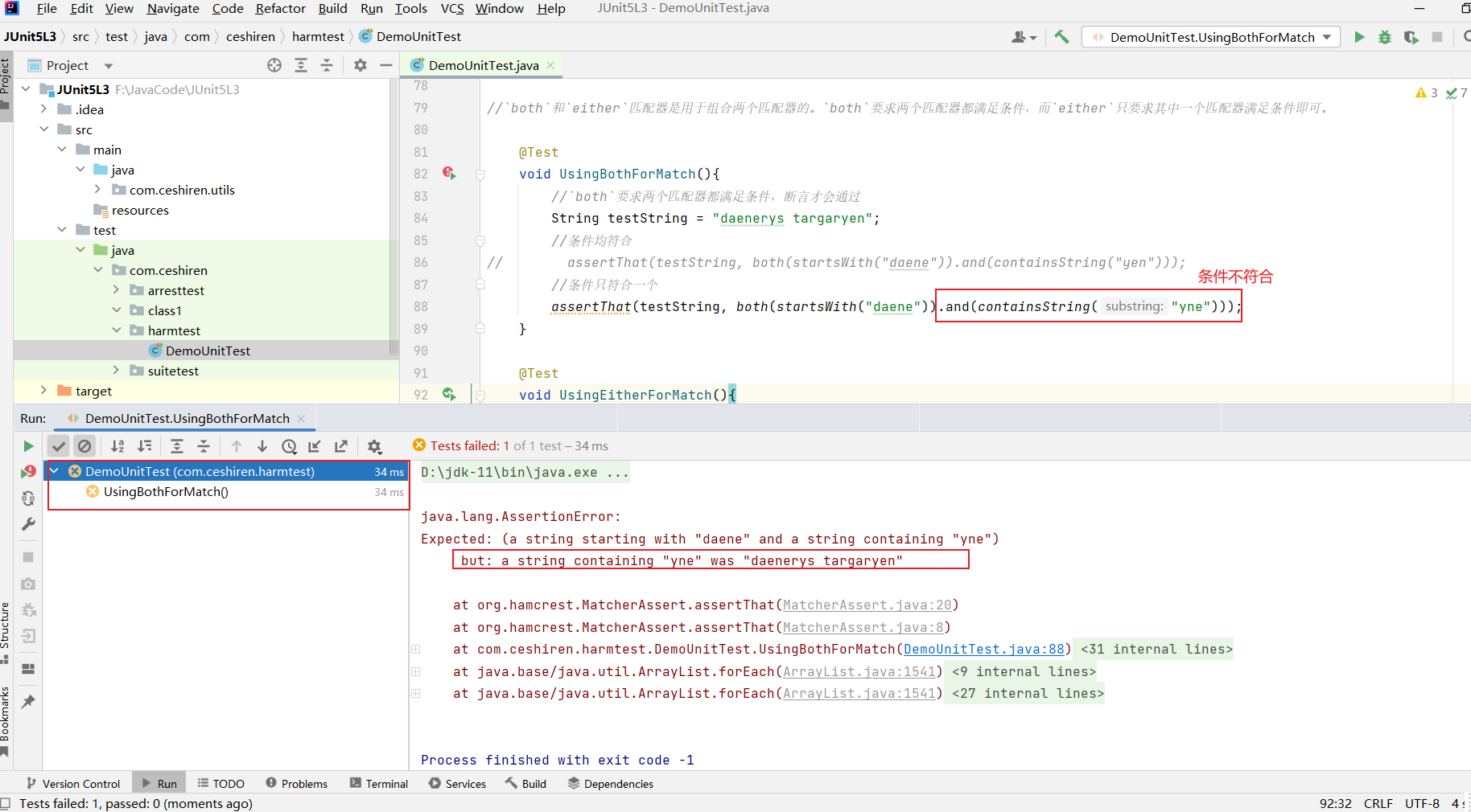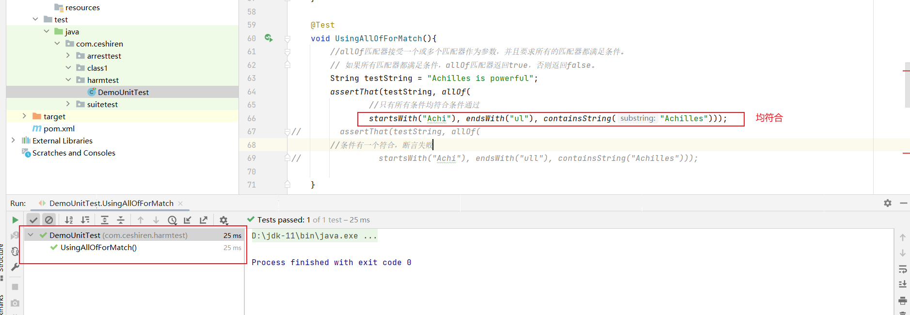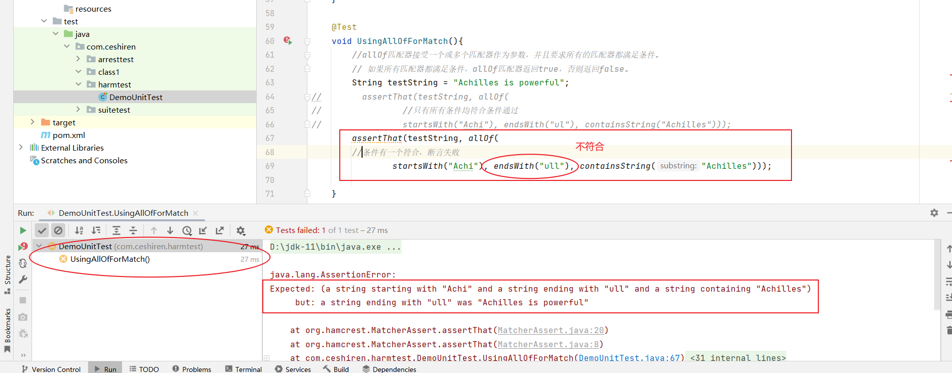 //endsWith("est")表示以est结尾,containsString("j")表示包含j,条件中有一个不符合即断言失败