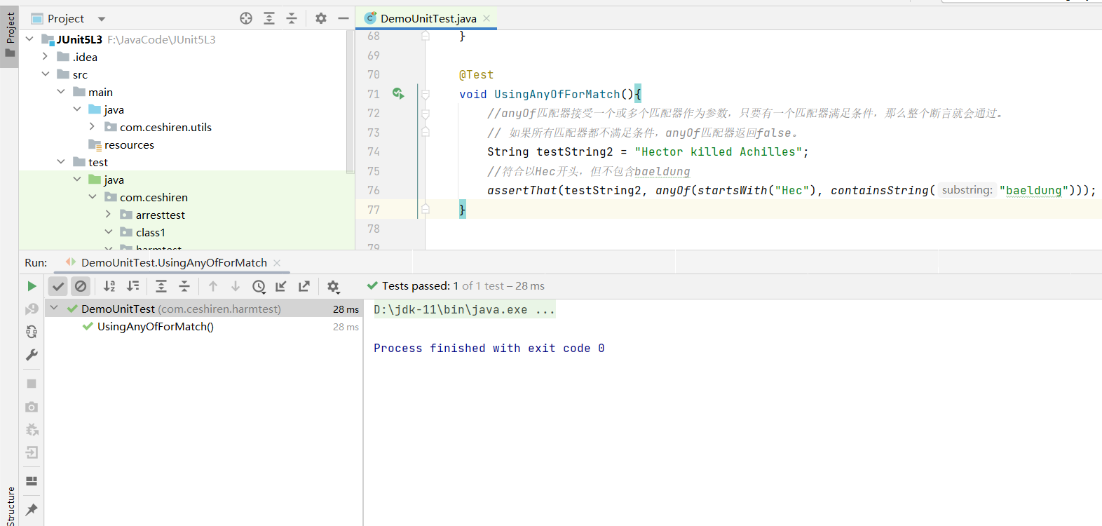 //anyOf匹配器接受一个或多个匹配器作为参数,只要有一个匹配器满足条件,那么整个断言就会通过。