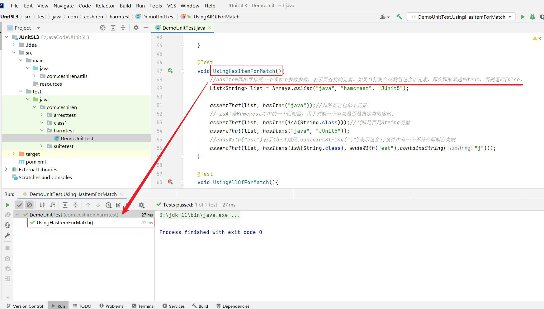 assertThat(list, hasItem("java"));//判断是否包单个元素